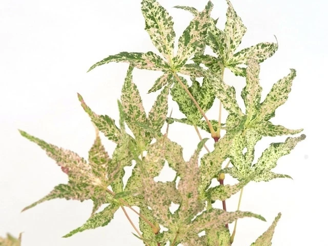 Dwergesdoorn met bijzonder gespikkeld witbont blad. De hoogte na 10 jaar is 150 cm. De bladkleur is groen met wit en rose spikkels.