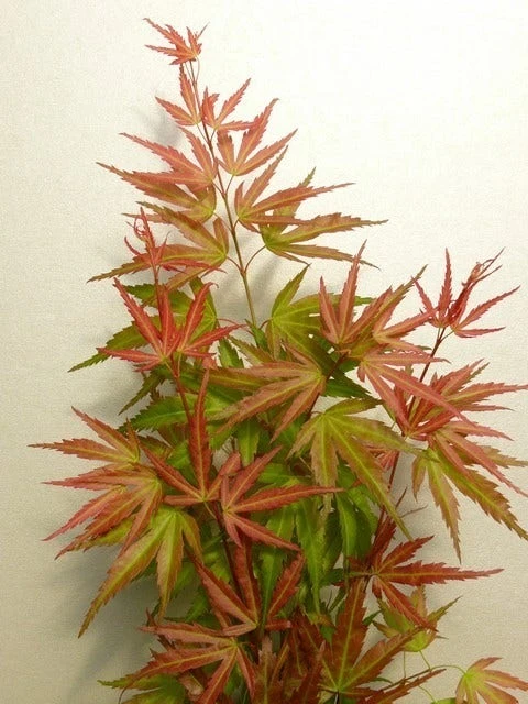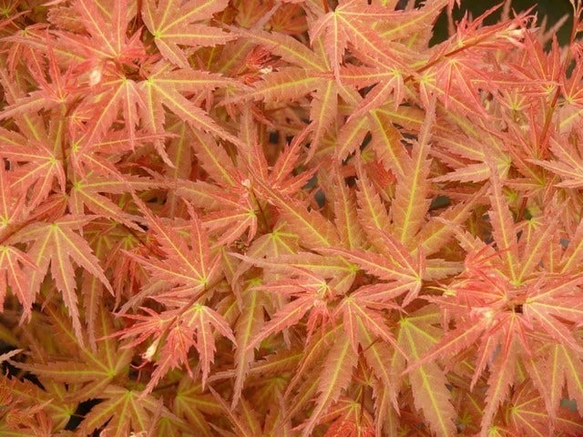 Acer palmatum ‘Wilson’s Pink Dwarf’ loopt in het voorjaar uit met mooie roze bladeren.