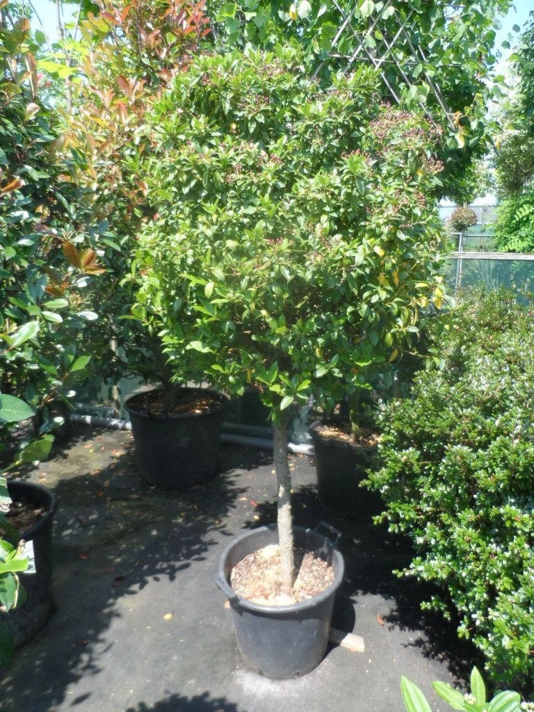 Het gaat hier om de Viburnum tinus ‘Eve Price’ op stam. De vermelde maten zijn stamhoogtes.